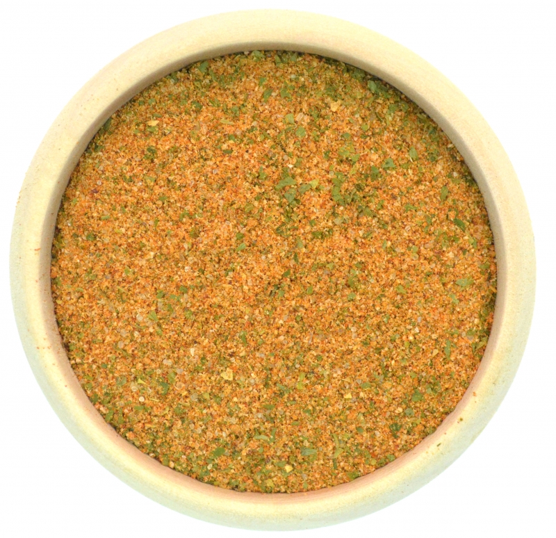Zutaten: Meersalz, Aroma (enthält: WEIZEN), Paprika, Petersilienblätter, Dextrose, Knoblauch, Koriander, Kümmel, Muskatnüsse. (kann Spuren von Senf, Sesam, Sellerie und Mandeln enthalten)