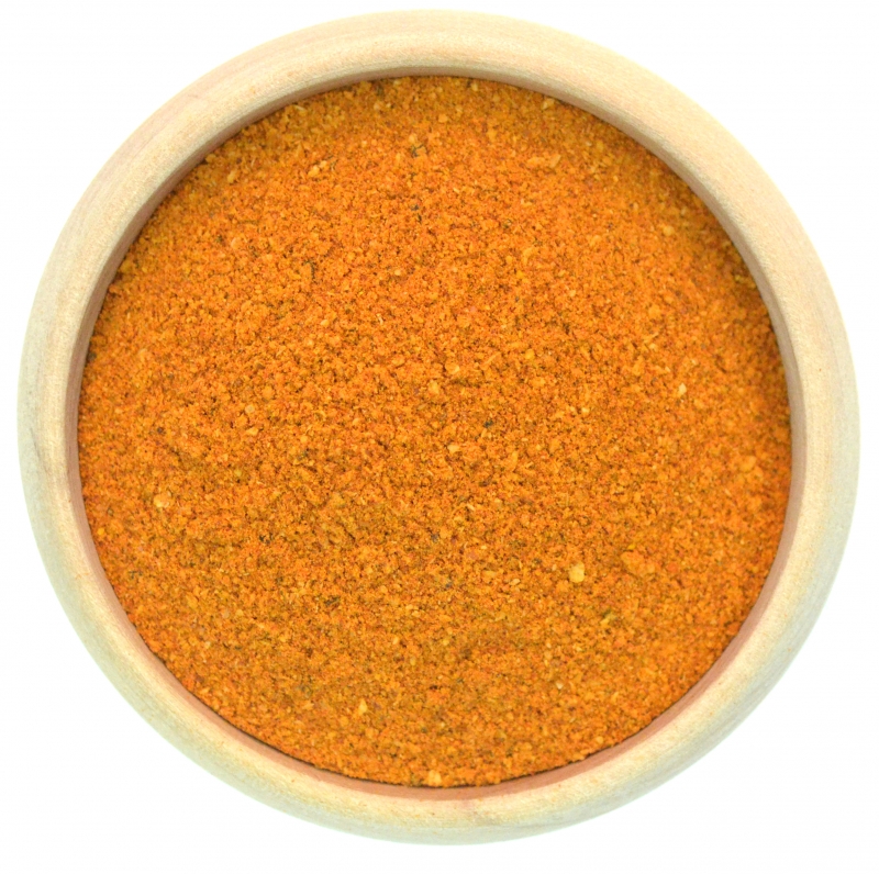 Zutaten: Paprika, Ingwer, Zwiebeln, Curcuma, Pfeffer, Knoblauch, SENFMEHL, Chillies, Cumin, Koriander, Bockshornkleesamen, Meersalz, Fenchel. (kann Spuren von Sesam, Sellerie, Gluten und Mandeln enthalten)