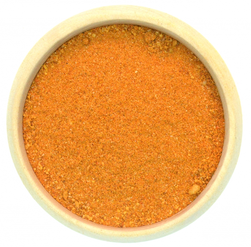 Zutaten: Chillies, Dextrose, Paprika, Curcuma, Koriander, Knoblauch, 5% Jodsalz, Ingwer, Bockshornkleesamen, Cumin, Cardamom, Muskat, Nelken, Fenchel. (kann Spuren von Senf, Sesam, Sellerie, Gluten und Mandeln enthalten)