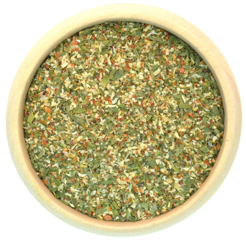 Zutaten: Knoblauch, Zwiebeln, Paprikaflocken, Karotten, Melissenblätter, Dillspitzen, Petersilienblätter, Schnittlauch, SELLERIEBLÄTTER(kann Spuren von Senf, Sesam, Gluten und Mandeln enthalten)