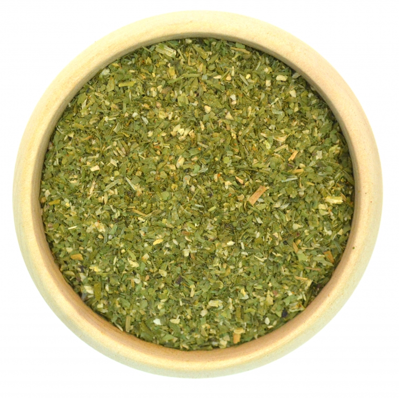 Zutaten: Petersilienblätter, Schnittlauch, Zwiebeln, Pfeffer, Dillspitzen, Kümmel, Paprika. (kann Spuren von Senf, Sesam, Sellerie, Gluten und Mandeln enthalten)