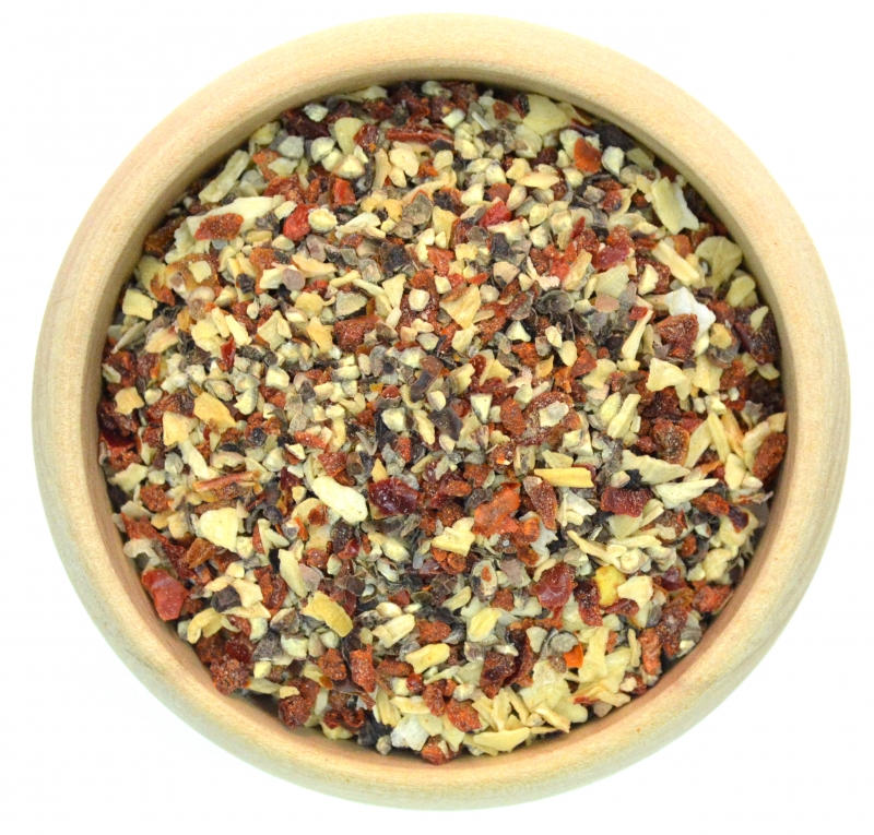 Zutaten: Pfeffer, Paprika, Zwiebel, Meersalz. (kann Spuren von SENF, SESAM, SELLERIE, GLUTEN und MANDELN enthalten)