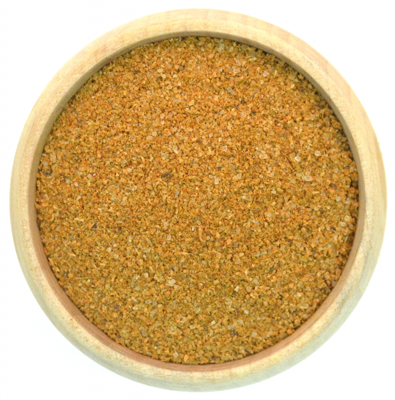 Zutaten: Meersalz, Zwiebel, Pfeffer, Paprika, Knoblauch, Chillies, Basilikum, Koriander. (kann Spuren von SENF, SESAM, SELLERIE, GLUTEN und MANDELN enthalten)